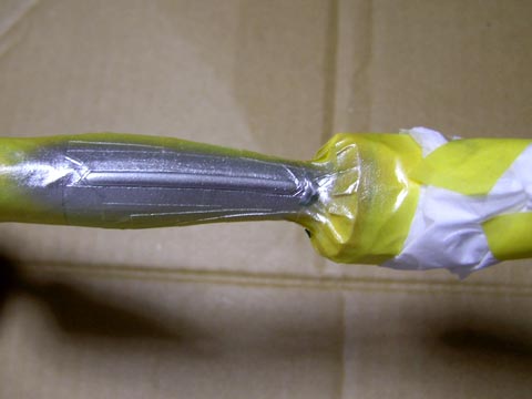 足の青のトコをマスキングして銀を吹きます。