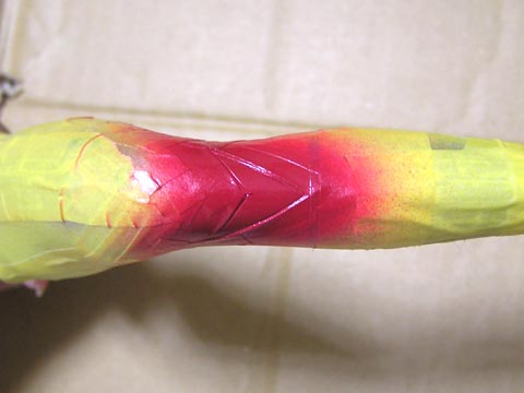 マスキングし直して赤&クリアーを塗りました。やれやれ。