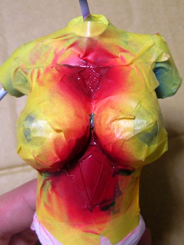 一旦薄紫の部分のマスキングをお腹から胸元の辺りまで剥がして、再度マスクし直しています。