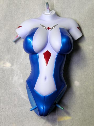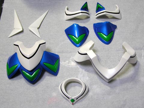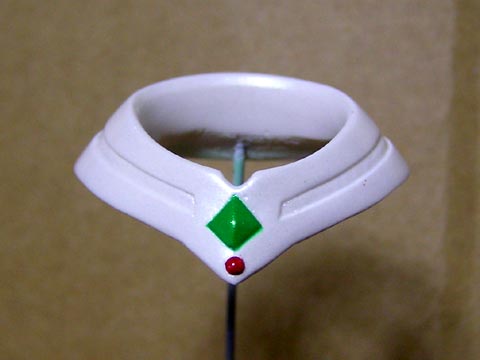 ローブの白い部分にパール、クリアーの順に塗ります。 マントの基部や胴体の背中、手足の丸いトコの側面なども忘れずに塗って下され。