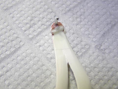 髪の毛の大きい方に接着します。ここも接着面が多少ヒケ気味なのでエポキシ系が良いと思います。