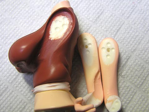左腕→左手→右腕、の順に接着してます。