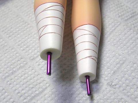 頭部がきっちり接着できるまでの間に、胴体と下半身に軸打ちして、