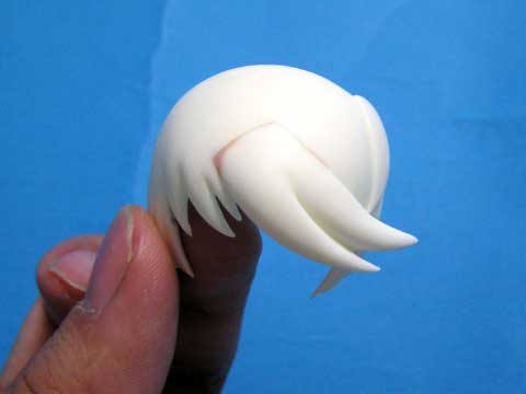 同じく前髪パーツも2分割されているので、頭パーツをガイドにして接着。