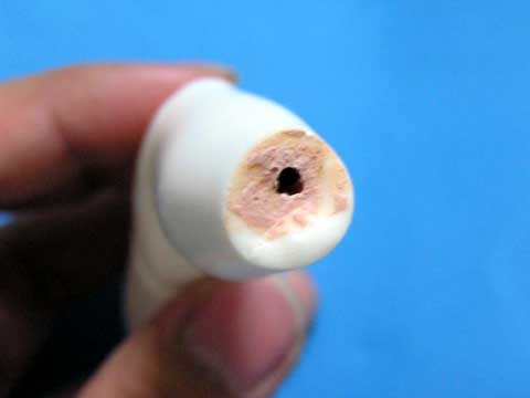 ポリパテは穴から出ない程度に控えめに詰めます。