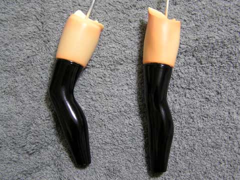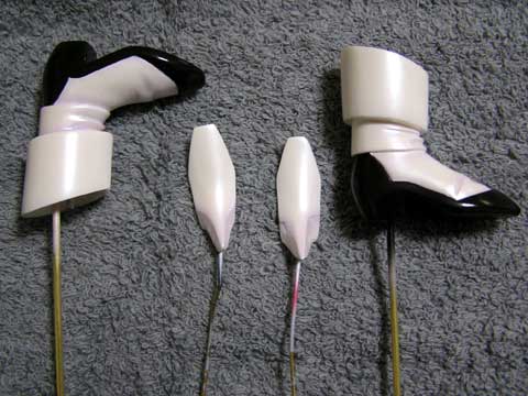 ・足側にはポリパテを詰め、ブーツ側に2mm真鍮線を差して、