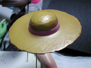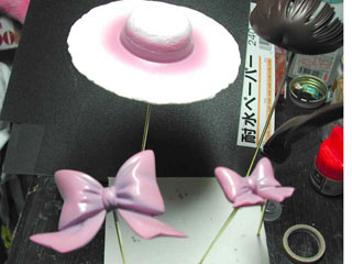 帽子のリボンとスカートのリボンを紫に。