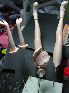 肌&髪のパーツはボークスの肌色サフ、その他のパーツはメタルプライマーを塗った後ベースホワイトを塗ります。