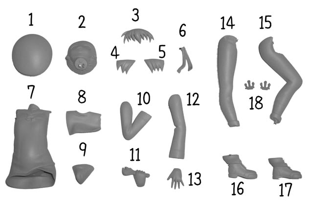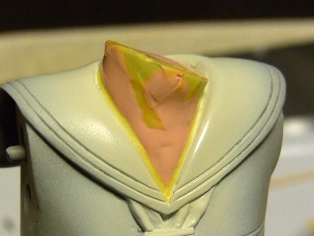 セーラー服の襟は塗装前に胴体に接着して継ぎ目を消して下さい。