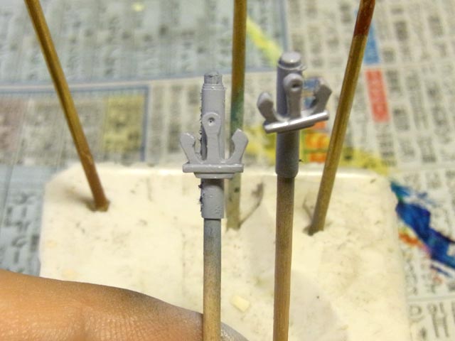 錨のパーツはプラ板に貼って複製してありますので、裏側をヤスリ掛けしてプラ板の厚み分+α薄くして下さい。