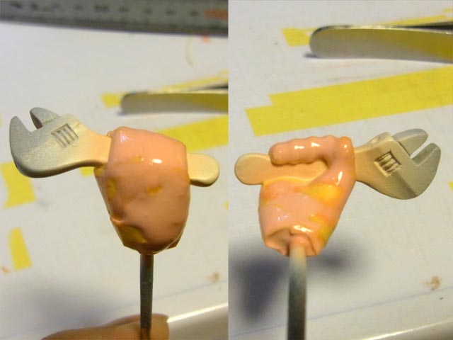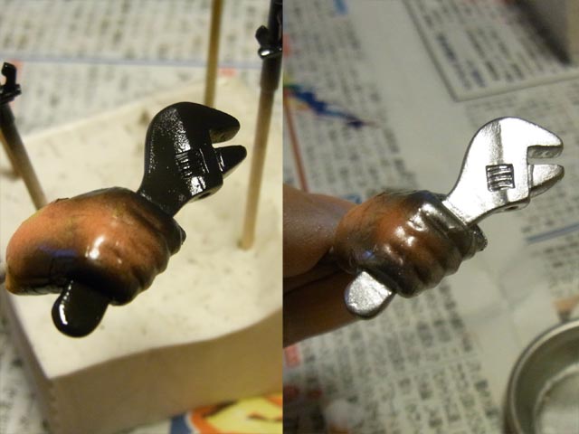 モンキーレンチ以外の全パーツつや消しにした後、おめめだけエナメルのクリアで艶ありにしました。