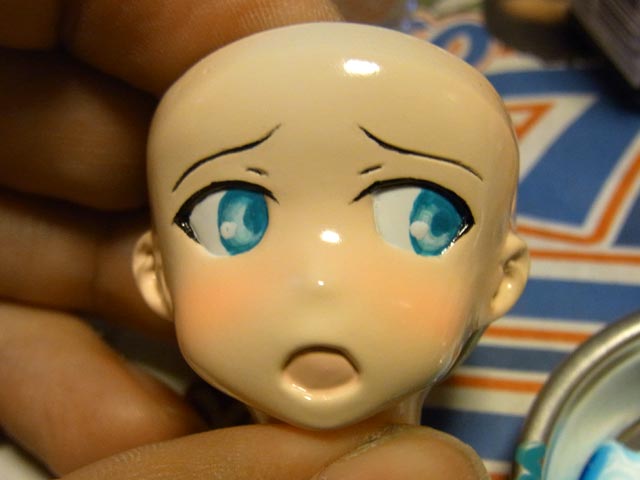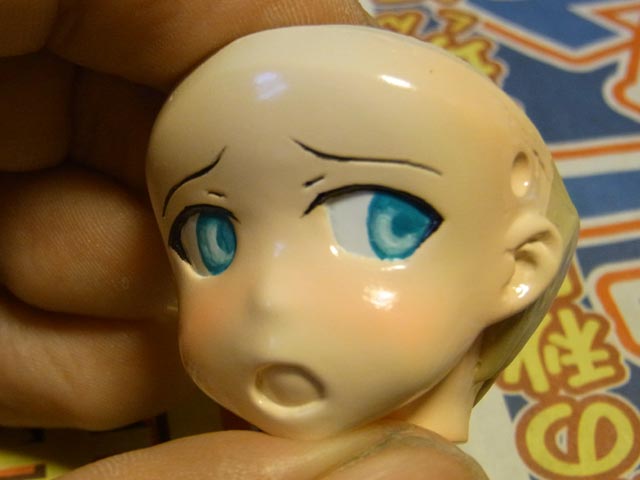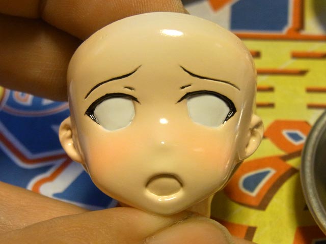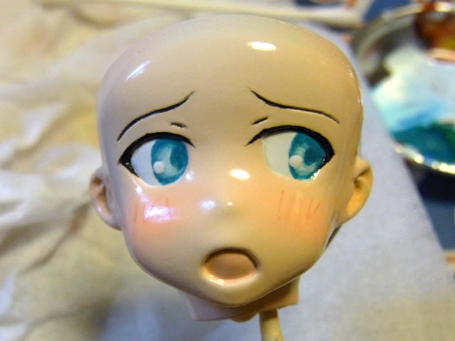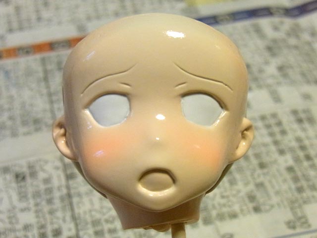筆塗りに備えて顔をクリアーでピカピカにします。