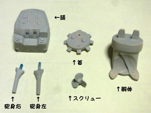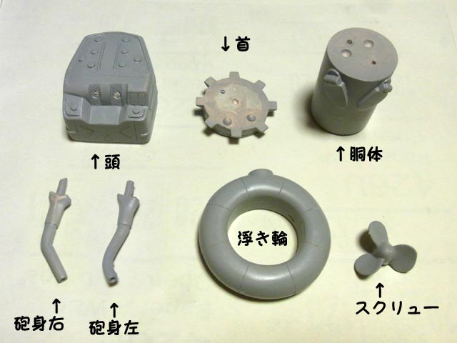 舵は微妙に形が違います(笑)が左右の区別はないです。 砲身は右は下向きに曲がってます。左は左&下向きに2箇所で曲がっています。 砲身は2箇所で曲がってる方が右です。 砲身は根元のカバーが少し凹んでいる方が右です。まぁ逆につけても何も問題はないですわ(^^;